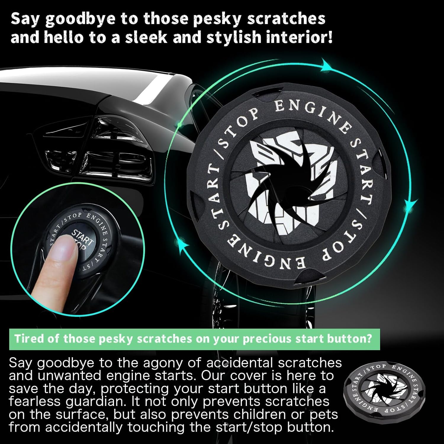 This push button start cover is made of durable material that won’t fade or deform over time. It fits snugly and securely over your start/stop engine button, preventing accidental touches that could disrupt your driving. You can easily clean it with water or detergent to keep it shiny and new. It’s a good choice as a gift for your friends or family who love their cars.
