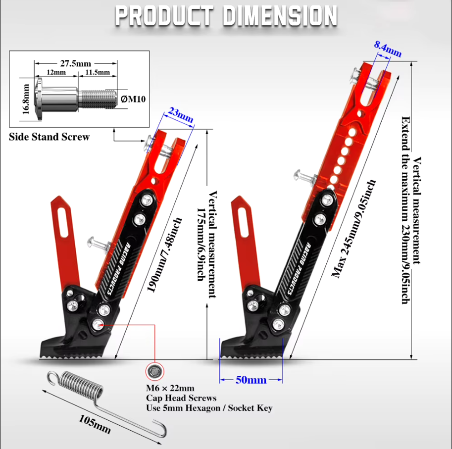 ( রেড কালার ) Aluminium Side Stand For Motorcycles