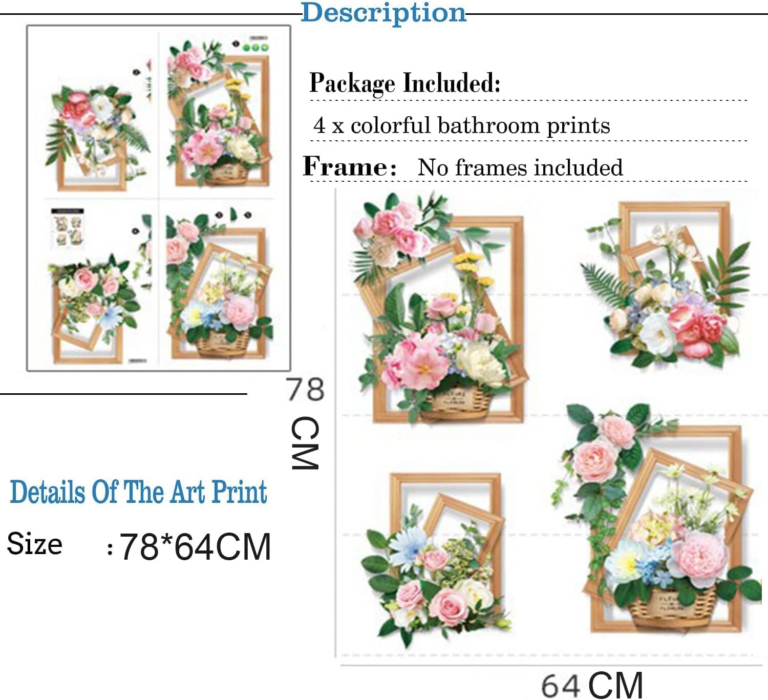 প্রোডাক্ট কোড : Code-1268-Flower Plants Frame Wall Stickers (4 Pcs Set)