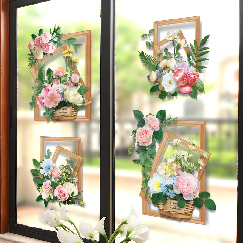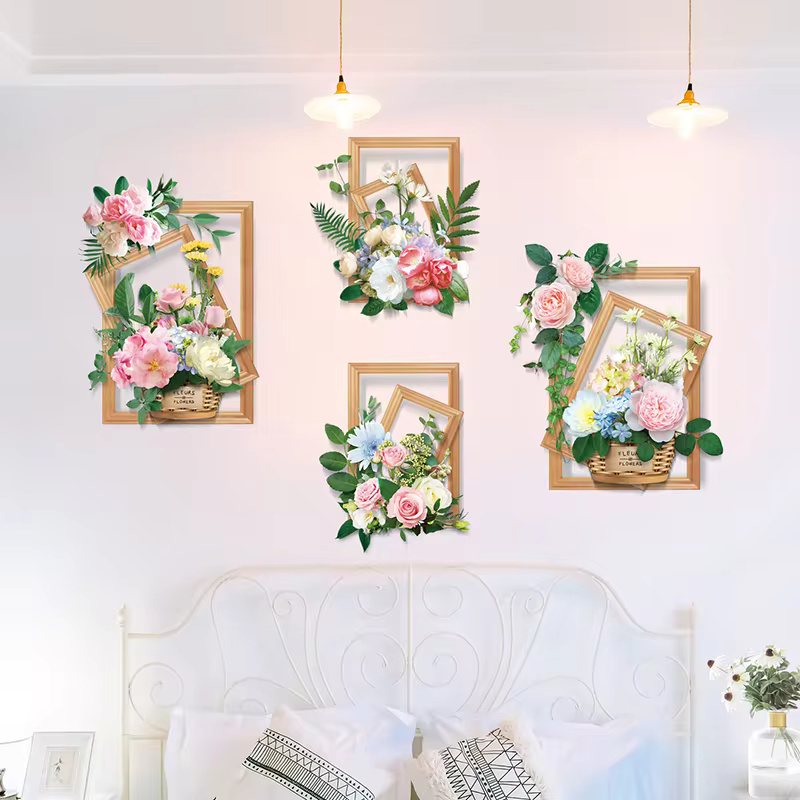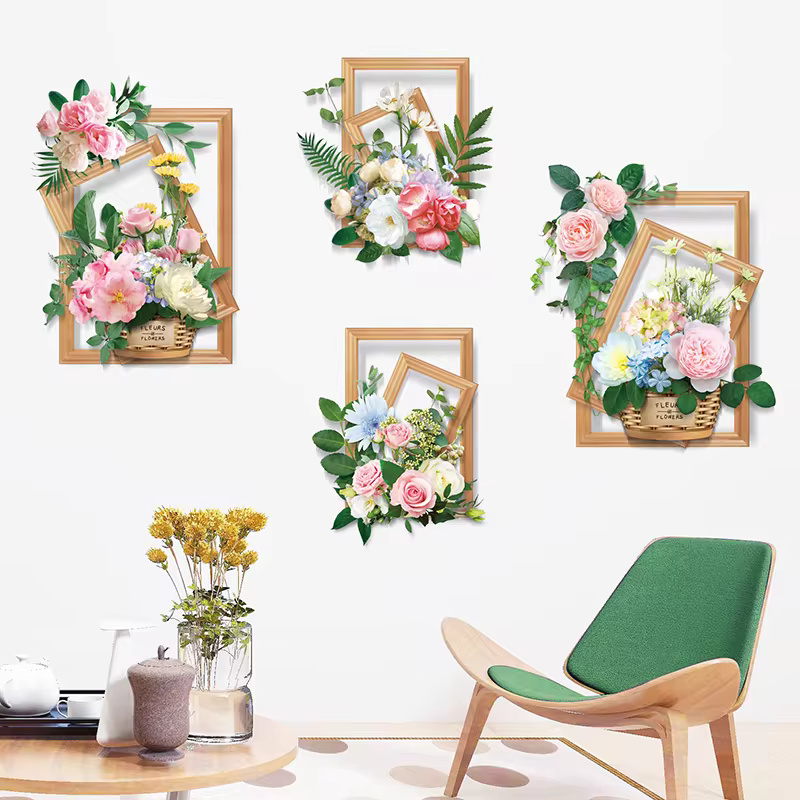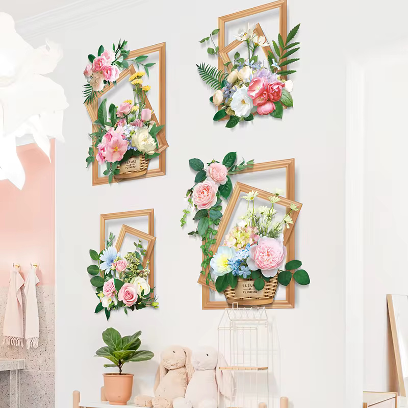 ( ৪ পিচের সেট ) Flower Baskets Wall Stickers DIY Plants