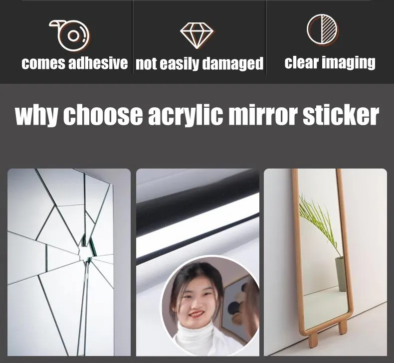 Acrylic Mirror Stickers Home Bathroom Reflective Surface Oval & sqaure Wall Art Home Decor Wall Stickers Mirror