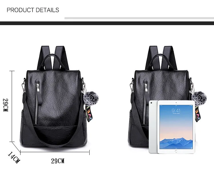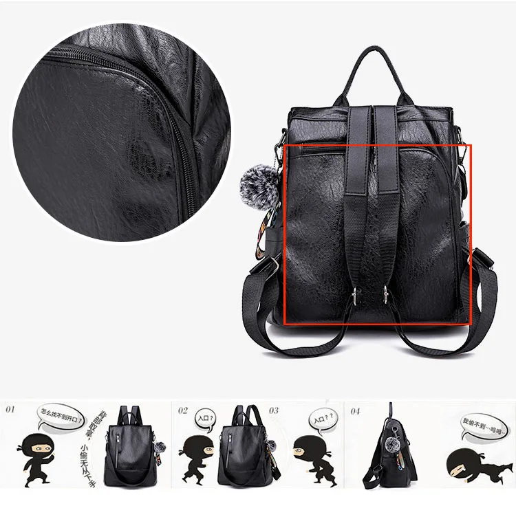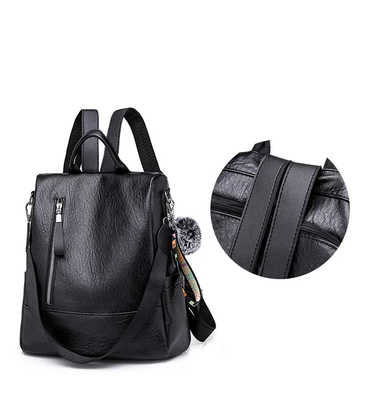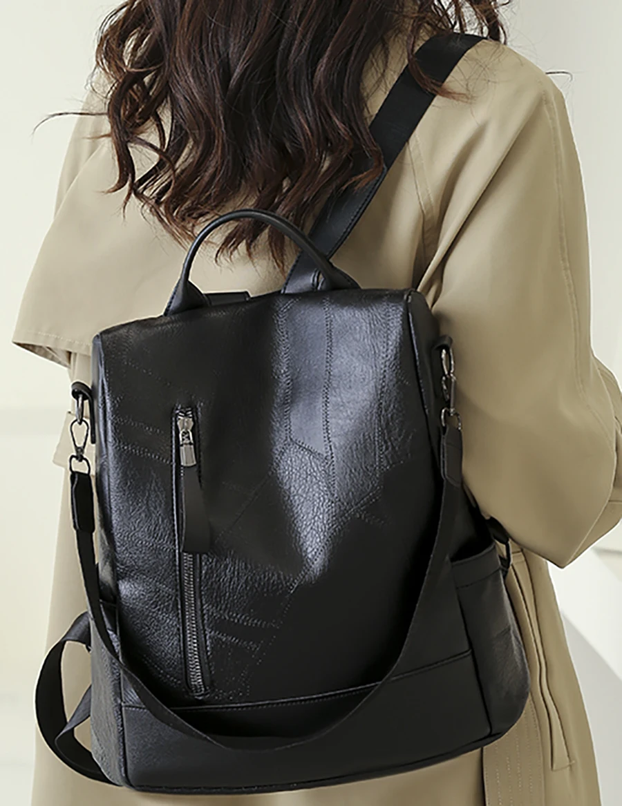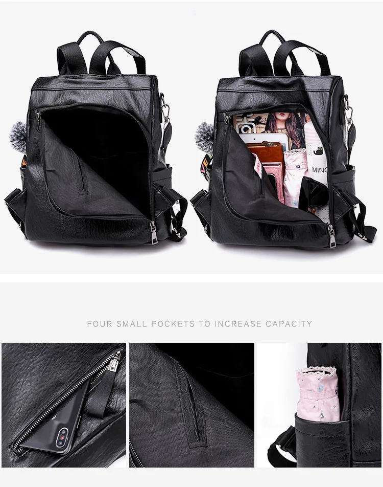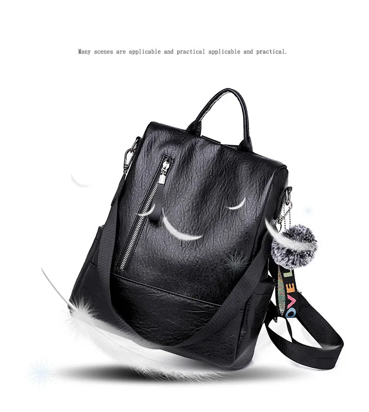 Multipurpose PU Leather Backpack Multiple Pockets Shoulder Bag Women'S Backpack Travel Bags Design Convertible Satchel Handbags