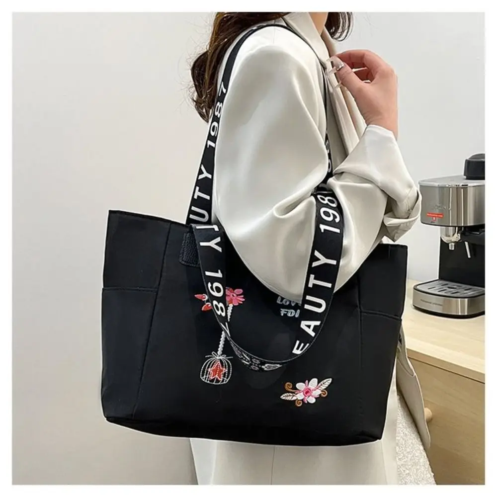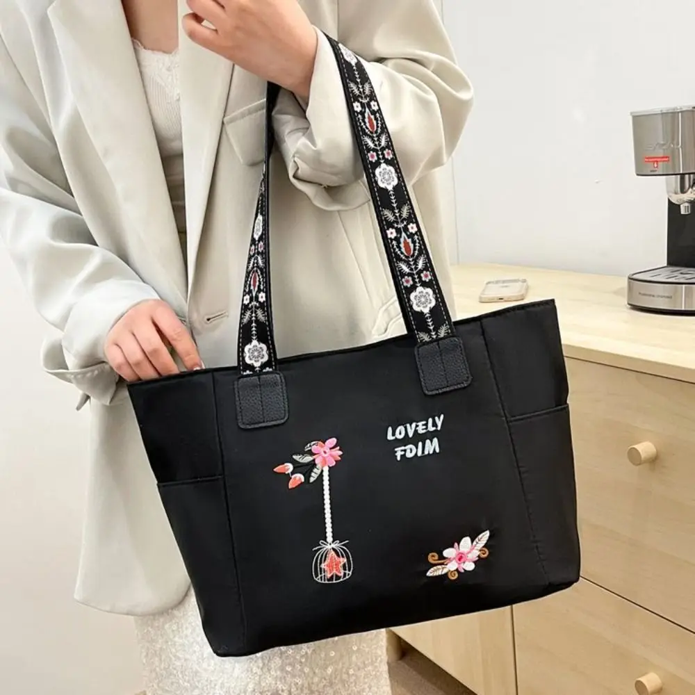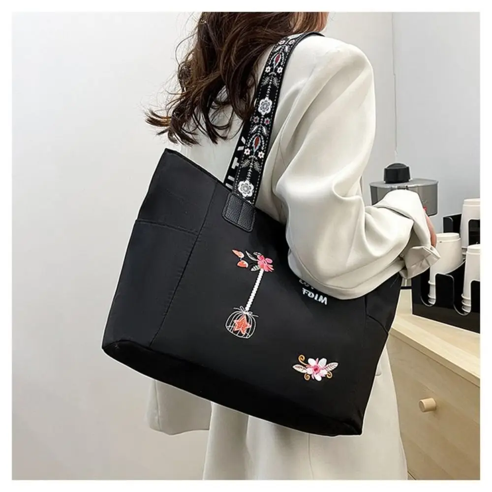 Embroidery Women Handbag Nylon Waterproof Casual Tote Shopping Bag Large Capacity Female Shoulder Bags
