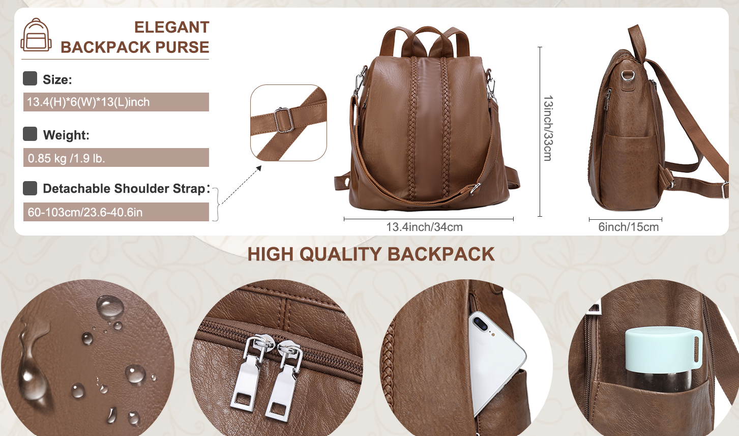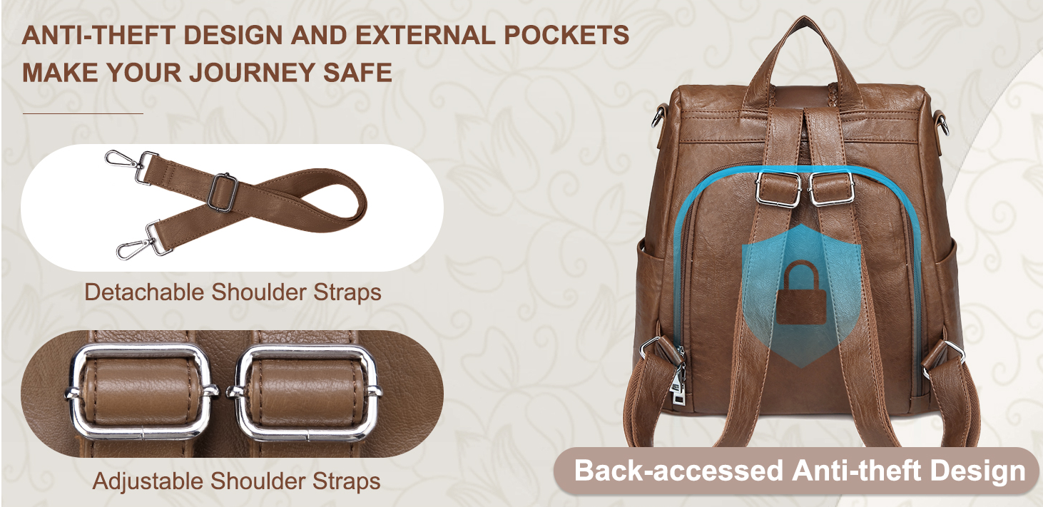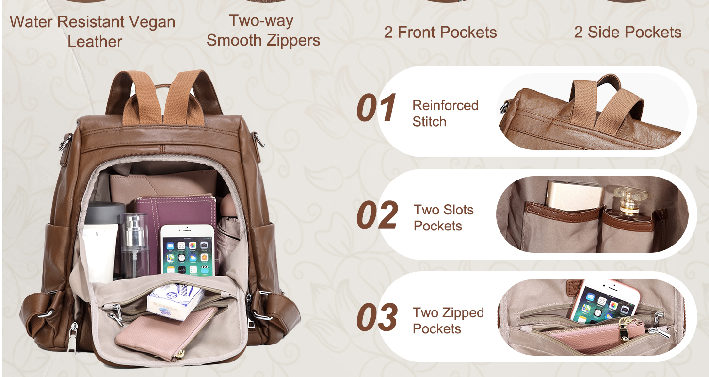 Multipurpose PU Leather Backpack Multiple Pockets Shoulder Bag Women'S Backpack Travel Bags Design Convertible Satchel Handbags