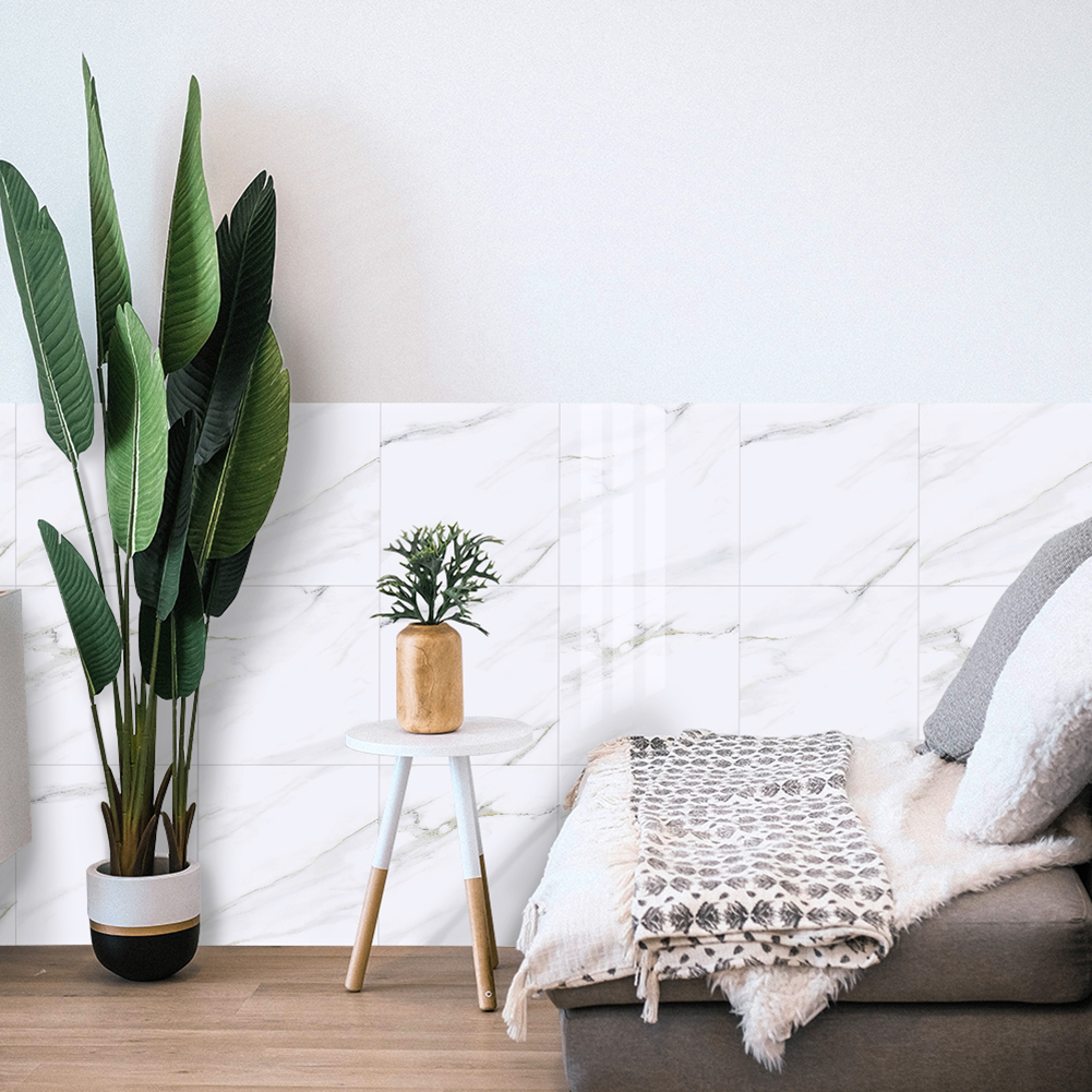 ১০ পিসের সেট ( ১০ স্কয়ার ফুট - সাদা কালার ) Self-Adhesive Marble Tiles Sticker
