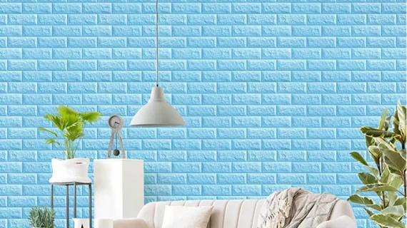 ১০ পিসের সেট ( ৪০ স্কয়ার ফুট - নীল কালার ) Brick Pattern Sticker Waterproof Sticker