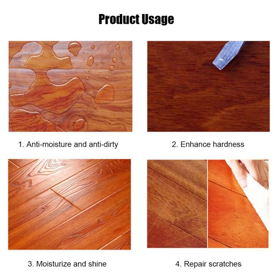 100% natural beeswax - the magic of a new home; Integrated cleaning and maintenance of anti mold and antibacterial flooring; Wax oil care oil; Waterproof repair; Furniture polishing; Can penetrate the interior of wood, easy to absorb, and resistant to drying; Forming a protective film on the surface of wood; Make your funeral as bright as new.