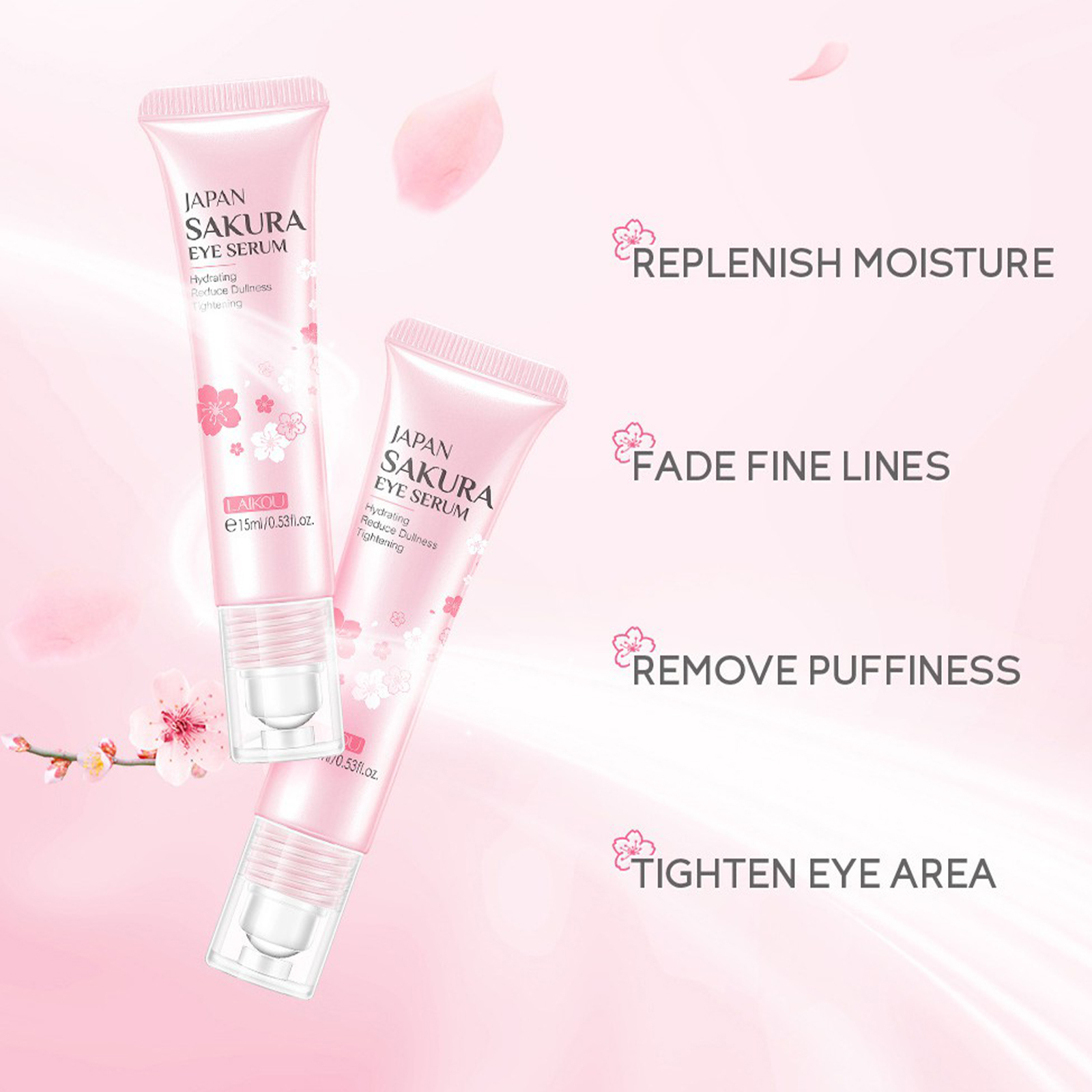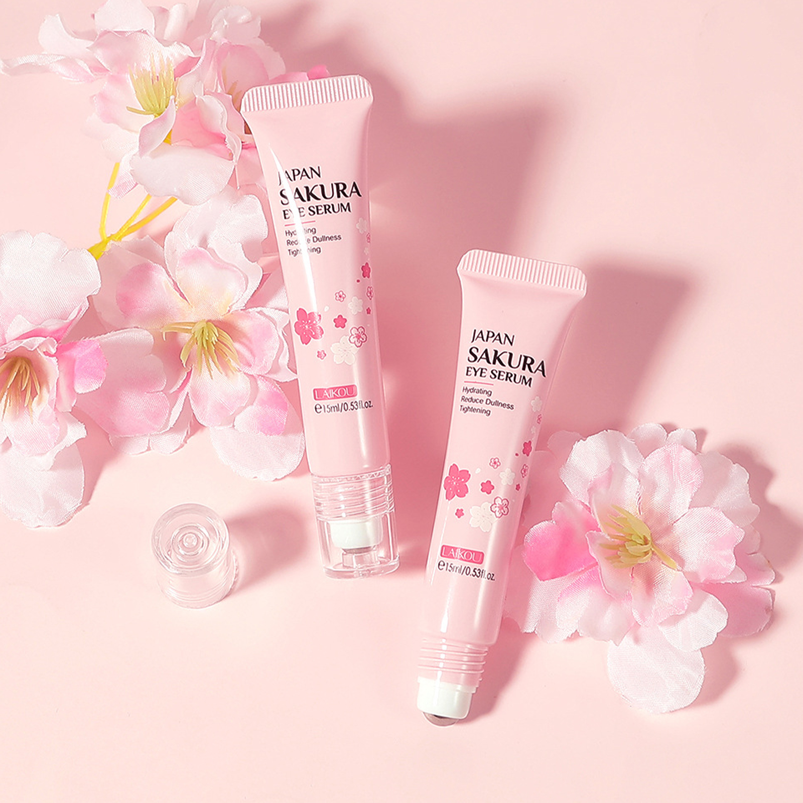 LAIKOU Sakura Eye Serum Whitening Brightening Moisturizing Hydrating Lifting Firming Eye Roller Massage Anti Aging Anti Wrinkle Remove Dark Circles Eye Bags Eye Essence Eye Care 15ml