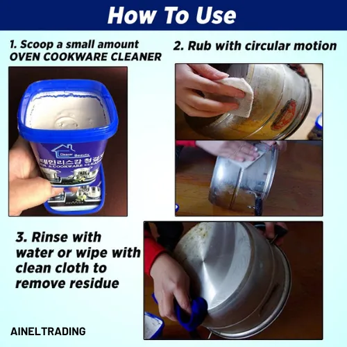 🌟 প্রিমিয়াম কেয়ার: আপনার দামী কুকওয়্যার ও ওভেনের উপর কোনো ক্ষতিকর প্রভাব ফেলে না, বরং এটি তাদের জ্বলজ্বলে উজ্জ্বলতা ফিরিয়ে আনে।