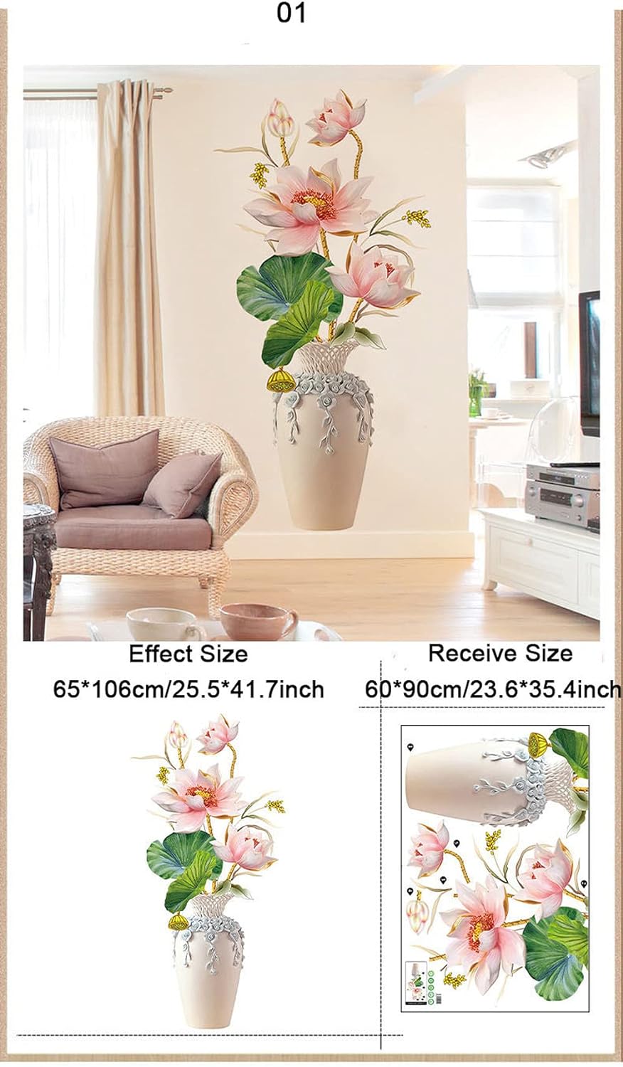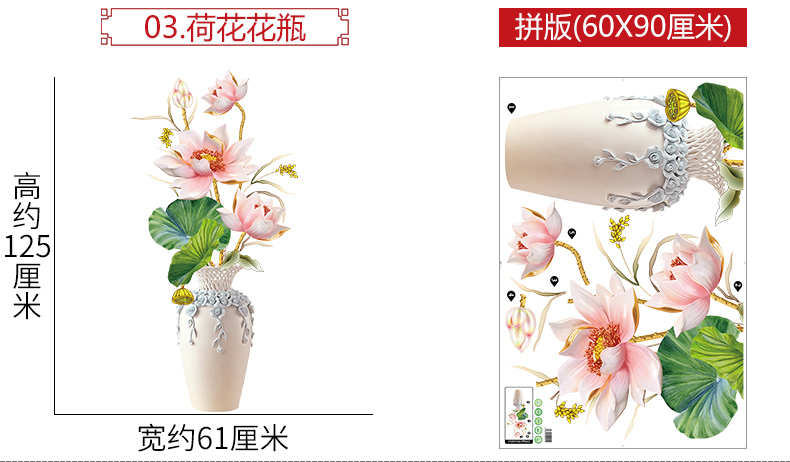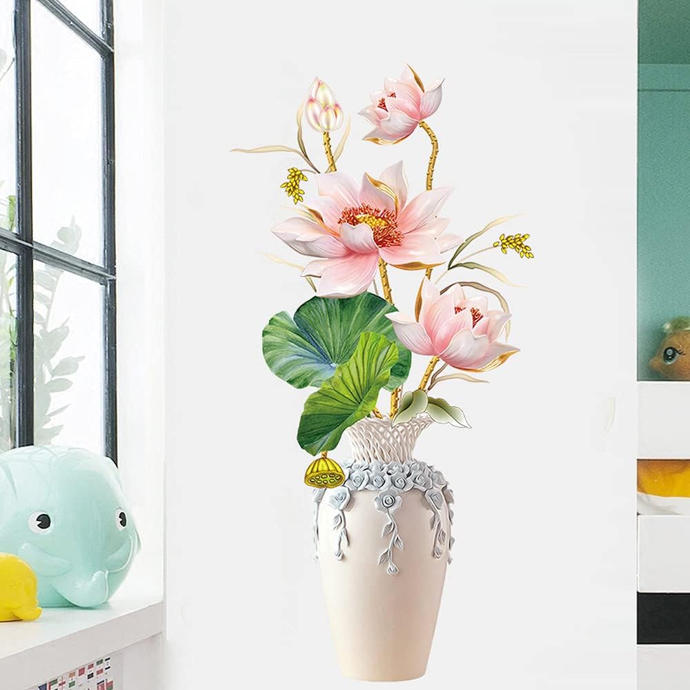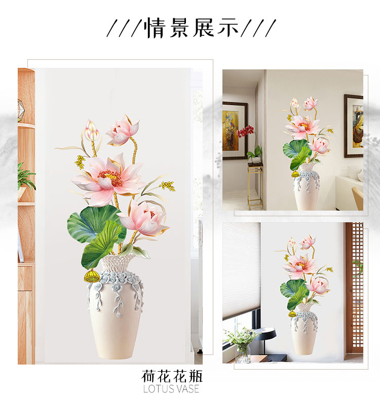 Chinese Style Pink Lotus Vase Wall Stickers Living Room Sofa Porch Background Decoration Self-adhesive Painting
